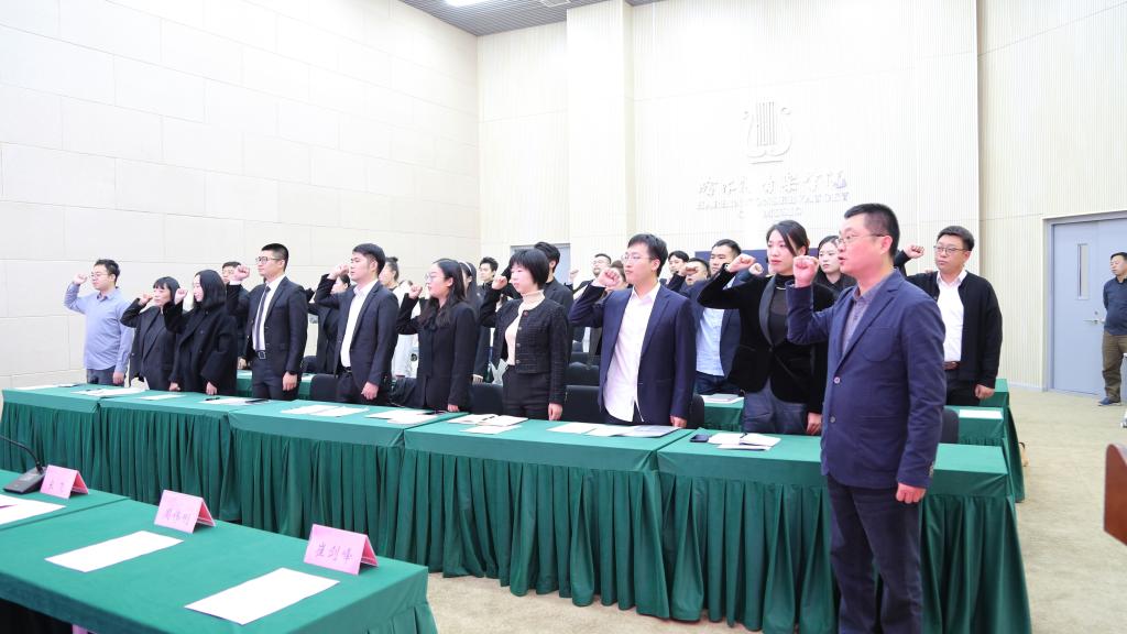 全体新入职教师集体签订《永利23411集团教师师德承诺书》,并在作曲系副主任崔哲教授领誓下,面对国旗,庄严宣誓。