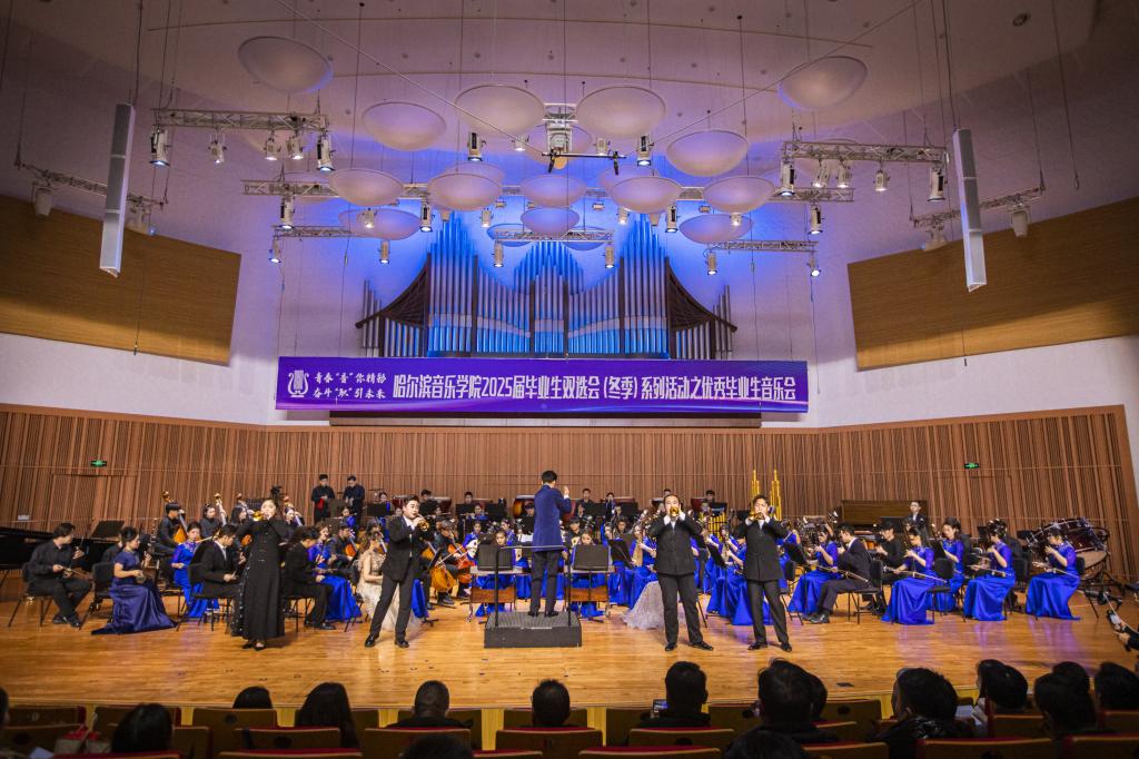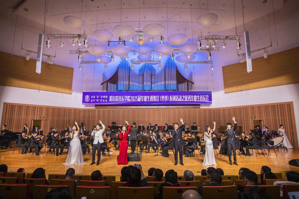 本次优秀毕业生音乐会是学院2025届毕业生双选会(冬季)系列活动之一,是学院“三优”人才培养成果的生动展现,更是“带着音乐会去访企”的重要呈现形式,全方位、多角度地呈现了哈音学子们朝气蓬勃、锐意进取的良好形象,不仅是对学生们艺术追求与努力成果的肯定,也是为用人单位招聘人才的一次隆重推介,赢得了用人单位的广泛赞誉与高度评价。