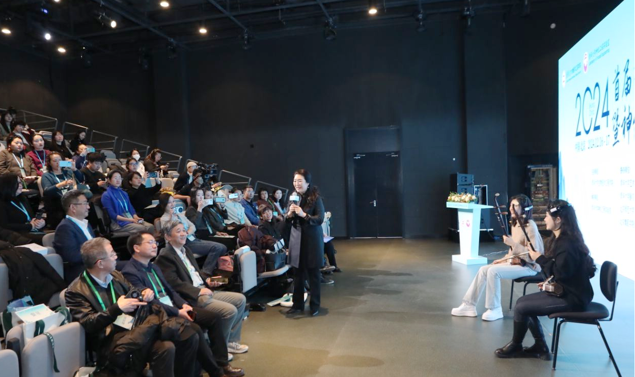 宋蓓以《音乐、心理与脑》为题发言,从河南省舞阳县贾湖遗址出土的8000年前的骨笛谈起,阐述音乐活动对个体不同时期脑结构和功能发育产生的重要影响,以及对认知能力、语音识别能力等方面的积极作用,并分析音乐活动中参与者脑间交流与互动对其音乐表现的重要影响。