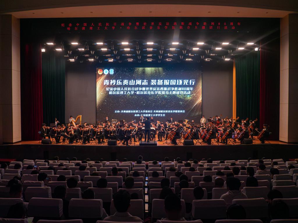 为纪念中国人民抗日战争暨世界反法西斯战争胜利80周年,进一步加强大学生思想政治教育,5月15日晚,学院与哈尔滨理工大学联合举办的“青衿乐奏山河志 装备报国逐光行”主题团日活动——交响音乐会在哈尔滨理工大学西区大学生活动中心盛大举行。学院纪委书记、党委委员付尧,副院长、党委委员崔志林及哈尔滨理工大学党委常委、党委副书记郭加利,党委常委、党委副书记赵水杉,党委常委、纪委书记孙树海,党委常委、副校长林屹等领导出席活动。永利23411集团学生处团委联合党支部,哈尔滨理工大学学生工作部、团委、二级学院学生工作负责人及1000余名师生参与活动。
