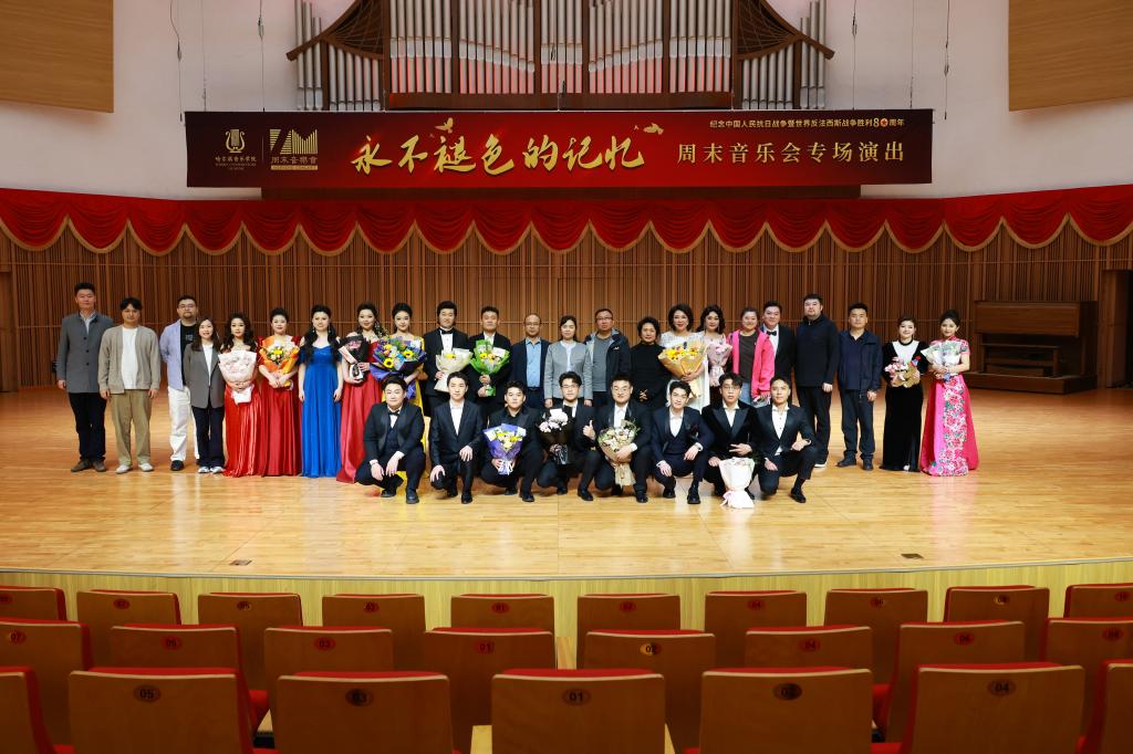 学院副院长、党委委员马晓春出席音乐会,来自黑龙江大学、哈尔滨中医药大学、哈尔滨工程大学等高校的师生与社会各界的音乐爱好者齐聚一堂,共同感受那段波澜壮阔历史所承载的精神力量,感受着历史与歌声交织的独特魅力。