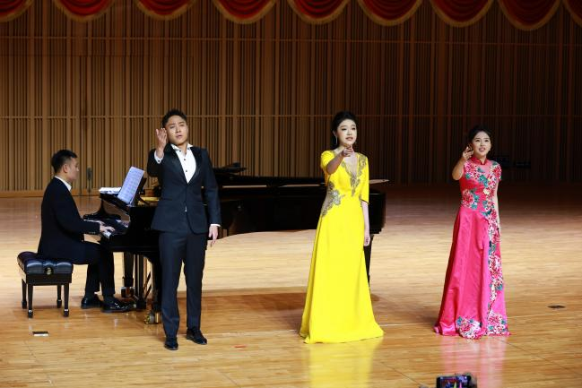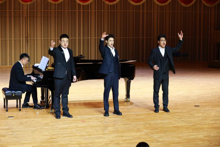 音乐会上,声乐歌剧系的师生演唱了《忆秦娥 娄山关》《延安颂》《冰山上的雪莲》等十余首红色革命歌曲,现场气氛热烈,听众沉浸在历史与歌声交织的独特魅力中,不时跟唱。音乐会在全体演员齐声合唱《义勇军进行曲》振奋人心的歌声中落下帷幕,现场掌声、欢呼声经久不息。