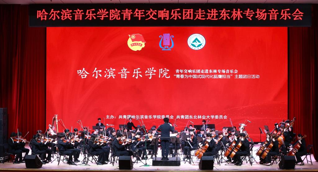学院管弦系、团委等相关部门负责同志,学生处团委联合党支部,东北林业大学相关职能部门负责同志,各学院师生代表等千余名师生一同观看演出。