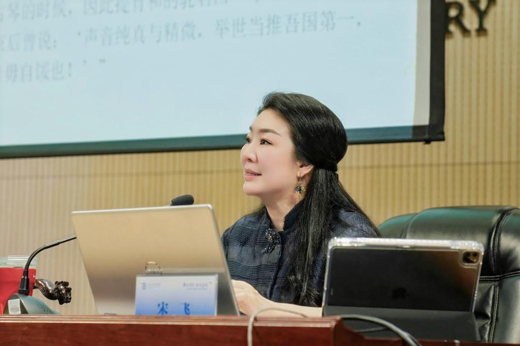随后,学院院长宋飞的“刘天华二胡曲的演奏诠释”教学公开课现场爆满。作为当代胡琴艺术的领军人物,宋飞将《月夜》《病中吟》等刘天华经典曲目作为范例深入解析。公开课中,宋飞院长传授了“传承刘天华作品是需守住民族性根基”这一概念,通过现场示范性教学,让现场观众体会到二胡的音色独特魅力、旋律中的独特韵味,及作品的情感内涵,是作品灵魂所在,强调赋予作品当代对话力,让经典“活”在当下舞台。这场公开课,既是对刘天华经典的深度致敬,更是对传统作品当代演绎的创新探索。