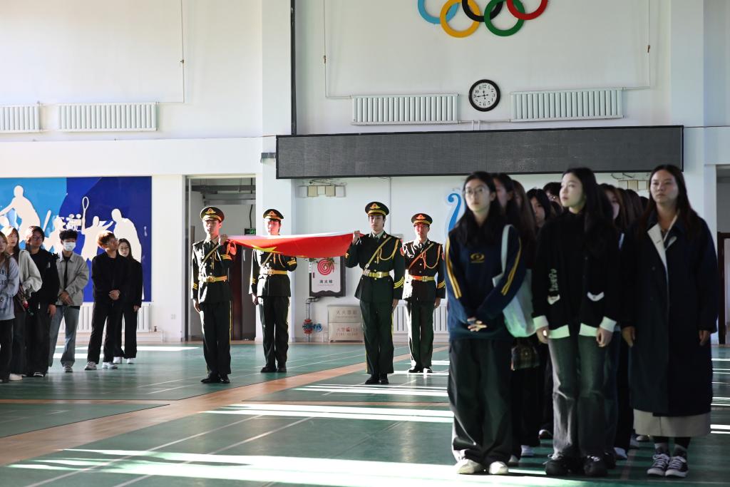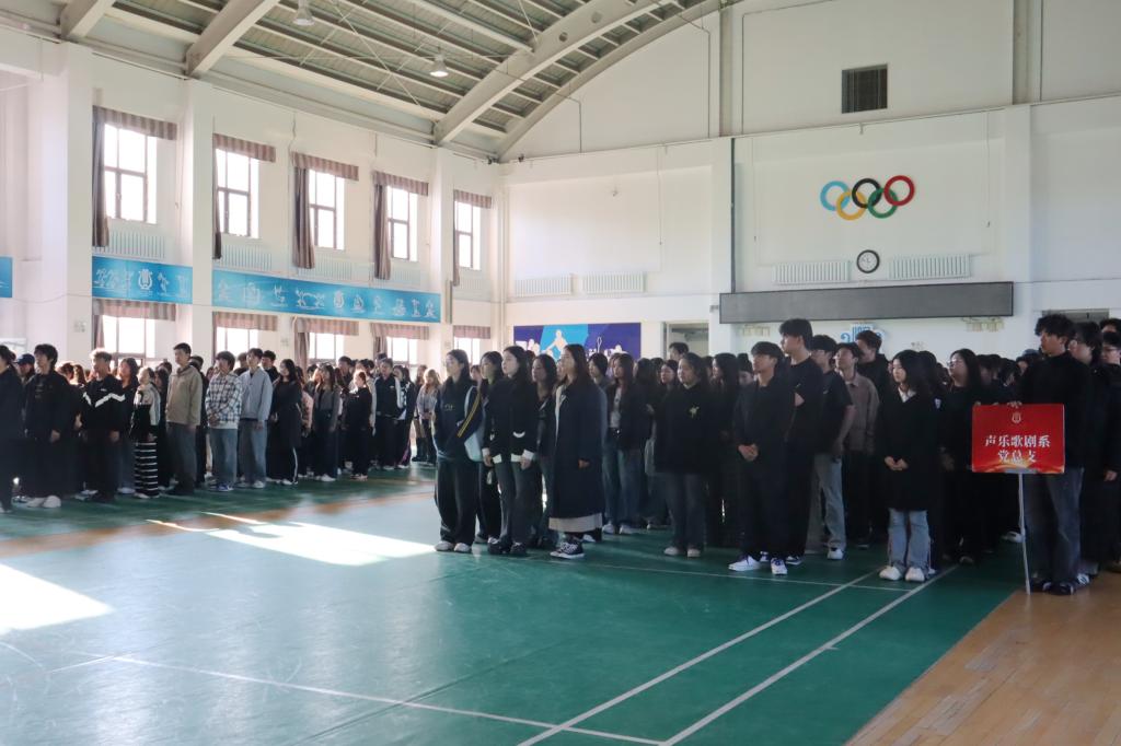 为深入学习宣传贯彻党的二十届三中全会精神,进一步加强对青年学生的爱国主义教育,增强学生的国家意识、民族意识、历史意识,厚植爱党爱国之情、激发强国复兴之志,9月18日,由学院团委主办,声乐歌剧系团委承办的“铭记伟大胜利,擎旗开创未来”纪念“九一八”事变94周年主题升旗仪式在体育馆举行。学院副院长、党委委员宛景森,党委委员、宣传统战部(党委教师工作部)部长丁健出席仪式。学院全体团干部、2025级本科生参加仪式。