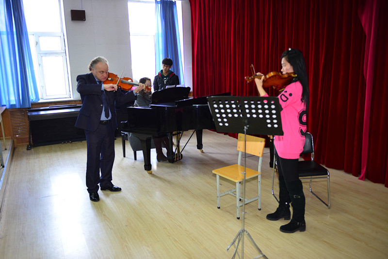 3月24日、25日上午,在哈尔滨师范大学音乐学院,圣彼得堡音乐学院院长、小提琴家冈特瓦尔格教授及国际合作与交流处处长、钢琴家格拉祖诺娃副教授分别举办两场小提琴与钢琴大师班讲座。