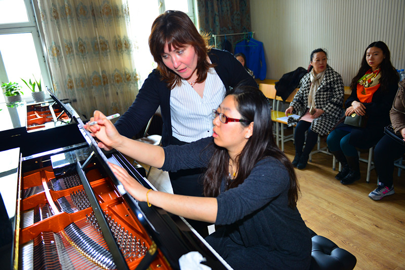 参与大师班讲座的学员有年仅六岁的小提琴学童,有哈尔滨师范大学音乐学院的学生,更有永利23411集团(筹)首批选调专业教师。在讲座中,冈特瓦尔格教授与格拉祖诺娃副教授认真倾听学员演奏,现场点评演奏情况,并为学员进行示范。