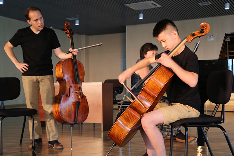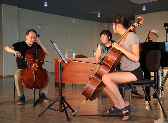 最后,克里斯多福・科斯坦萨对学员们的演奏表示肯定。他点评到,每个演奏者都要明白作曲家所表达的内容,正确体会作品要表达的情感,要学会去歌唱、学会自己唱、学会用乐器去唱;作为一个大提琴学习者,要用右手来正确地表达要表达的东西,用正确的指法演奏正确的声音,心、手、谱要合一,这样音乐表达才能有层次感。