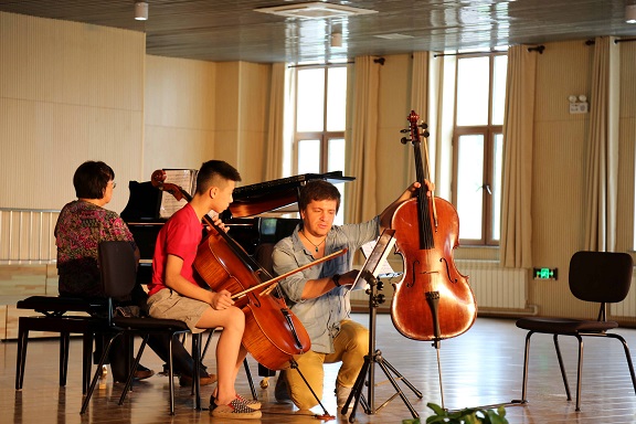 最后,弗拉基米尔·古里亚耶夫对学员们的演奏表示肯定。他点评到,演奏时要将乐器的声音想象成歌声,进而让乐手自身充分体会到乐器的独特魅力;作为第二大提琴的乐手,也要让听众感知到他的存在。