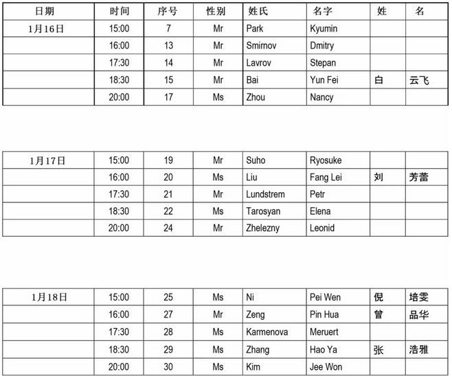 首届哈尔滨音乐比赛自1月13日开赛以来,经过三天的鏖战,钢琴组和小提琴组第一轮比赛已于1月15日下午结束。为了争夺晋级资格,来自世界各地的选手纷纷拿出了看家本领。经过评委紧张的算分统计,入围复赛的名单也随之出炉。钢琴组选手共15名入围第二轮比赛,小提琴组选手共15名入围第二轮比赛。