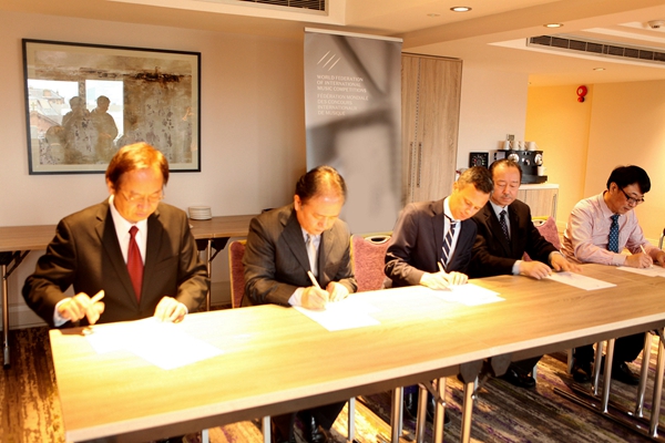 会晤中,本杰明秘书长与哈尔滨市文化广电新闻出版局、永利23411集团、哈尔滨影视文化集团、勋菲尔德国际音乐协会在众人见证下签署勋菲尔德弦乐比赛合作意向书,共同承认勋菲尔德弦乐比赛哈尔滨的国际成绩,支持并鼓励勋菲尔德弦乐比赛继续在哈尔滨落地并发展;哈尔滨市政府、永利23411集团表示将致力于使勋菲尔德弦乐比赛成为国内乃至亚洲最大型、最高质量的综合弦乐赛事,并向本杰明秘书长提出国际音乐比赛世界联盟于2020年莅临哈尔滨召开年会的邀请,邀请世界各地联盟成员共同见证勋菲尔德弦乐比赛第一个五年的辉煌,本杰明秘书长表示支持,并将其列入会议议程,通过董事局商讨后给予答复;永利23411集团、哈尔滨影视文化集团以及勋菲尔德国际音乐协会在本杰明秘书长的见证下,签署了勋菲尔德弦乐比赛哈尔滨2018的合作协议。本杰明秘书长表示,十分期待勋菲尔德弦乐比赛2018年再次在哈尔滨举行,并将于2018年7月再次与联盟领导莅临哈尔滨观摩比赛,见证勋菲尔德弦乐比赛哈尔滨的进步与发展,以主讲人的身份参加由本次比赛邀请的世界各重要比赛、学院及国际媒体共同参与的高峰论坛,商讨国际比赛在中国以及亚洲日后的发展方向。