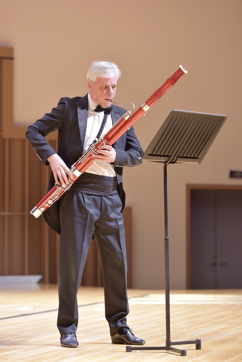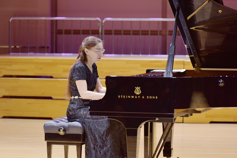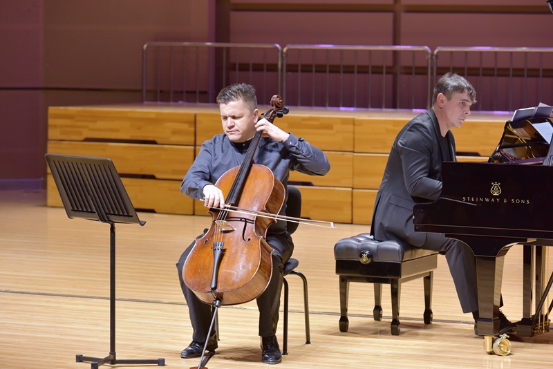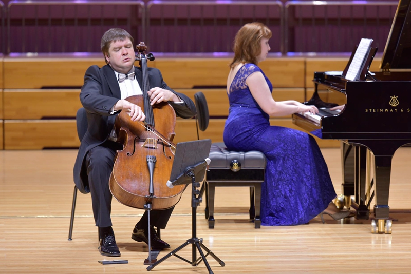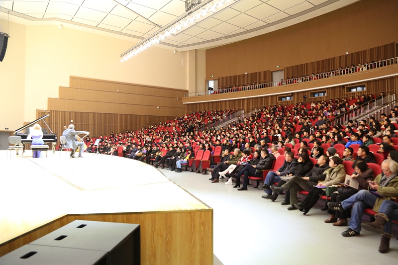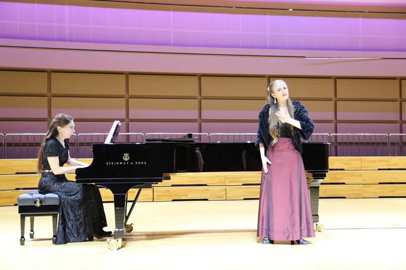 音乐会当晚,能够容纳800人的音乐厅几乎座无虚席,在场观众共同欣赏了由永利23411集团外籍专家倾情演绎的12首曲目。音乐会上半场,在巴赫《圣咏f小调》、舒伯特《圣母颂》、圣桑《天鹅》、皮亚佐拉《圣母颂》、卡萨多《情话》5首大提琴独奏中拉开序幕,这5首作品由俄罗斯圣彼得堡音乐学院院长、大提琴家阿列克谢·瓦西里耶夫演奏,俄罗斯圣彼得堡音乐学院国际处处长、钢琴家列金娜·格拉祖诺娃为其进行钢琴伴奏,作品演绎精妙,尽显大师风采。柴可夫斯基的《摇篮曲》,拉赫玛尼诺夫的《他们这样回答》《梦》由维多利亚·多布罗沃利斯卡娅倾情演唱,伴着轻缓的旋律,在低音区混入了银铃般的歌声,曲末又如入雾般消逝,给听众以无尽遐思。奥莉加·叶列缅科弹奏了斯克里亚宾的两首《钢琴练习曲》,旋律宽广,结构宏伟,形成了力度的强烈对比,给人以振奋精神之感。亚历山大·杰格佳连科演奏了维瓦尔第的《巴松协奏曲》第二乐章,巴松管柔和甘美的音色完美地诠释抒情优美的旋律,让在场观众大饱耳福。安德烈·布格里诺夫弹奏的拉赫玛尼诺夫两首《钢琴前奏曲》,第一主题的士气豪情与第二主题的抒情浪漫形成了鲜明的对比,音乐在有力的和弦中走入尾声。