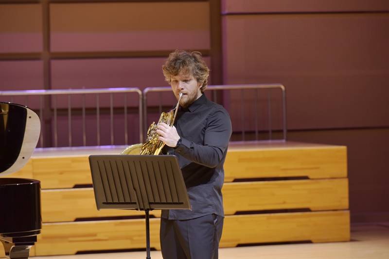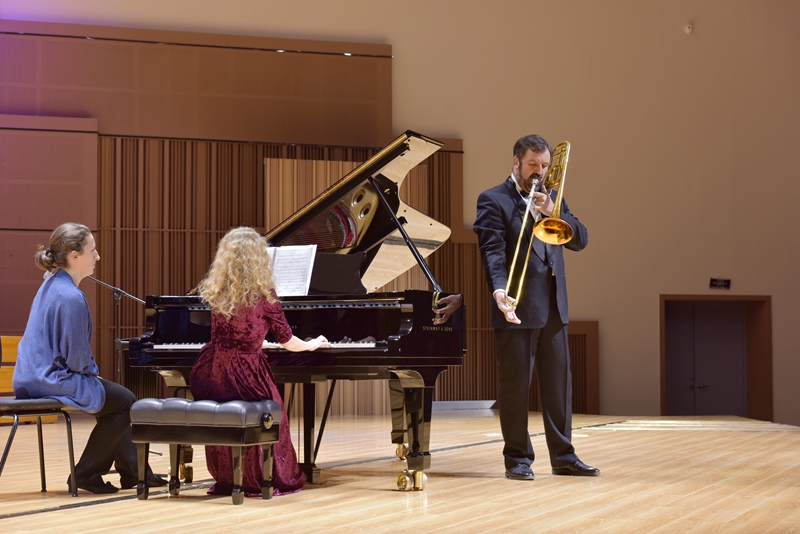 音乐会下半场,弗拉基米尔·古力亚耶夫演绎了大提琴独奏罗伯特·舒曼《幻想曲》、刘庄《浪漫曲》,旋律跌宕起伏,委婉流畅,仿佛让观众轻盈缥缈地进入了梦幻世界。马克西姆·谢苗诺夫演奏了格里埃尔的《协奏曲》,优美抒情的音色使简单的旋律充满了磅礴气势,给人以向上力量之感。钢琴曲《匈牙利狂想曲》《彩云追月》由安德烈·伊万诺维奇演奏,曲子意境优美,节奏轻快,改编后的钢琴曲更加丰富了的表现力和民族韵味,令在场观众听得如痴如醉。巴维尔·尼古拉耶夫斯基独奏了圣桑《短歌》和瓦茨拉夫·特洛伊《青蛙浪漫曲》两首长号曲目,轻快的节奏,高亢的音色,给人以轻松愉悦之感。克里斯季娜·格里高罗维奇演唱了爵士主题狂想曲系列《搭乘A号列车》《阳光明媚》《我找到了节奏》《咯坦诺加啾啾》《表演者》《雷格泰姆》《依帕内玛女孩》《月亮河》《你微笑的影子》九首曲目,赢得了现场观众的阵阵掌声。《路漫漫》《沿着彼得堡大街》由管弦系长号专业外籍教师巴维尔·尼古拉耶夫斯基倾情演唱,现场的观众不时为其打起节拍,唱起俄罗斯民歌最经典的旋律。音乐会最后,全体外籍专家齐上舞台,用中文合唱了《太阳岛上》,虽然发音不是很标准,但看得出来外籍专家从心里对永利23411集团的热爱,现场观众和着活泼悦动的节奏一起拍掌,气氛达到高潮,音乐会在美妙的歌声中圆满落幕。