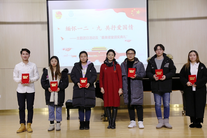 12月24日17时,第一演奏厅(主楼A219室)光影闪烁,音乐学作曲联合党总支在这里举办“缅怀一二·九 共抒爱国情”主题团日展示暨“最美寝室”评选颁奖典礼,音乐学系、作曲系学生参加。学院党委副书记徐长勇,研究生处处长贲利,教务处副处长那国光,学生处杨琳擘、董一舟,音乐学作曲联合党总支副书记张海彬,音乐学系教授马卫星应邀出席。