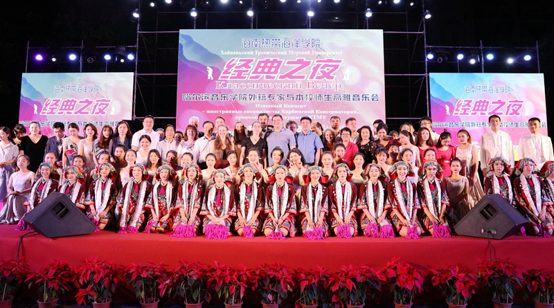 为全面展示我院对俄合作办学特色,加强与国内兄弟院校的音乐文化交流,推进龙江优秀文化艺术传播。12月20至21日,由我院党委副书记徐长勇带队的外籍专家团一行20人赴海南师范大学、海南热带海洋学院进行为期2天的音乐文化交流,为当地民众献上了两场高雅的视听盛宴。