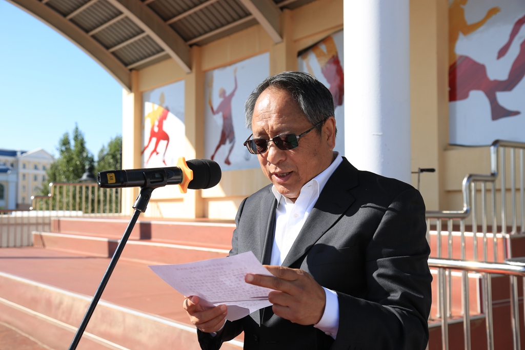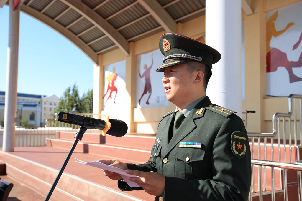 阅兵展示环节后,黑龙江省军区警备纠察队队长宫照军致辞。他希望参训学员能够记住这份军训体验,在未来的人生道路上用意志品质增强战胜困难的信心和勇气,在求学求艺的道路上披荆斩棘,取得骄人的成绩。