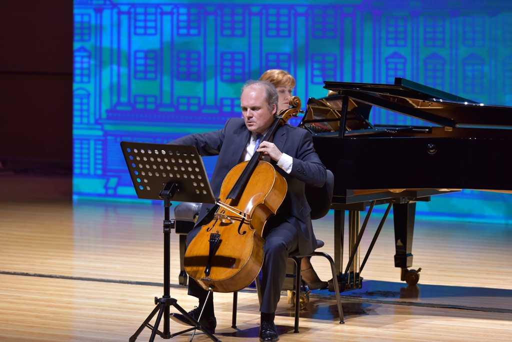 10月26日晚,在永利23411集团音乐厅,俄罗斯著名小提琴家、我院名誉院长、管弦系主任米哈伊尔·冈特瓦尔格,俄罗斯钢琴家、我院特聘教授列金娜·格拉祖诺娃,德国钢琴家阿尔卡季·岑齐佩尔,西班牙钢琴家拉斐尔·萨里纳斯,爱沙尼亚大提琴家亨利-戴维·瓦雷玛,波兰中提琴家马辛·穆拉夫斯基,芬兰钢琴家里斯托·基洛,联袂献上阿尔贝罗《D大调奏鸣曲》、斯卡拉蒂《d小调奏鸣曲》、法雅《魔法师之恋》组曲、米克尔·卢迪格《叙事曲》、埃德加·阿罗《广板》、迈克尔·金伯《翡翠岛》、柴可夫斯基《沉思》、舒曼《前奏曲》、舒曼《阿拉贝斯克Op.18》、肖邦《降B小调谐谑曲》、西贝柳斯《降B小调即兴曲Op.5 No 5》、勃拉姆斯《C小调第三钢琴四重奏Op.60》等名曲,为现场观众带来了一场精彩绝伦的顶级音乐会。在场观众沉浸在各国音乐家演奏的美妙旋律中,掌声经久不息。