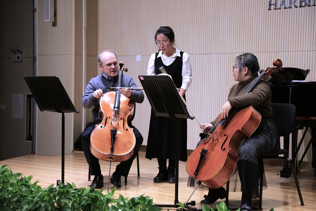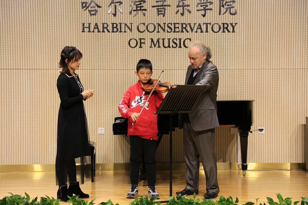 10月26日至27日,各国大师在永利23411集团主楼A219、A220举办了七场国际大师班,参加大师班的观众有我院青年教师、学生,中加附小附中(筹)的学生和家长,还有来自社会的音乐爱好者。各位大师为上台习奏的学员悉心讲解,从学员的基本功开始教起,对学生的坐姿、音色的处理、手指转换的位置及速度、持弓的方法等进行一一指导纠正。大师们鼓励学员演奏时注意感受乐曲的氛围,力争做到乐器与乐曲合二为一,演奏不机械化、程序化,而要带有自己独特的风格。大师们还与现场观众进行积极互动,解答观众们提出的各种问题。