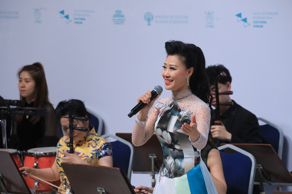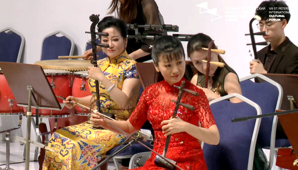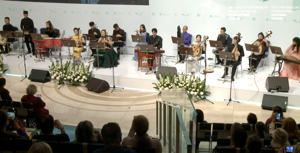 下半场音乐会由圣彼得堡音乐学院民乐团和声乐歌剧系联袂登台,师生精彩演奏了巴扬、古斯里、巴拉莱卡、冬不拉等俄罗斯传统乐器,演唱了柴可夫斯基歌剧唱段、俄罗斯民歌等声乐作品,用音乐描绘了俄罗斯民族音乐的生动面貌。当地时间21:00,全场音乐会落下帷幕。