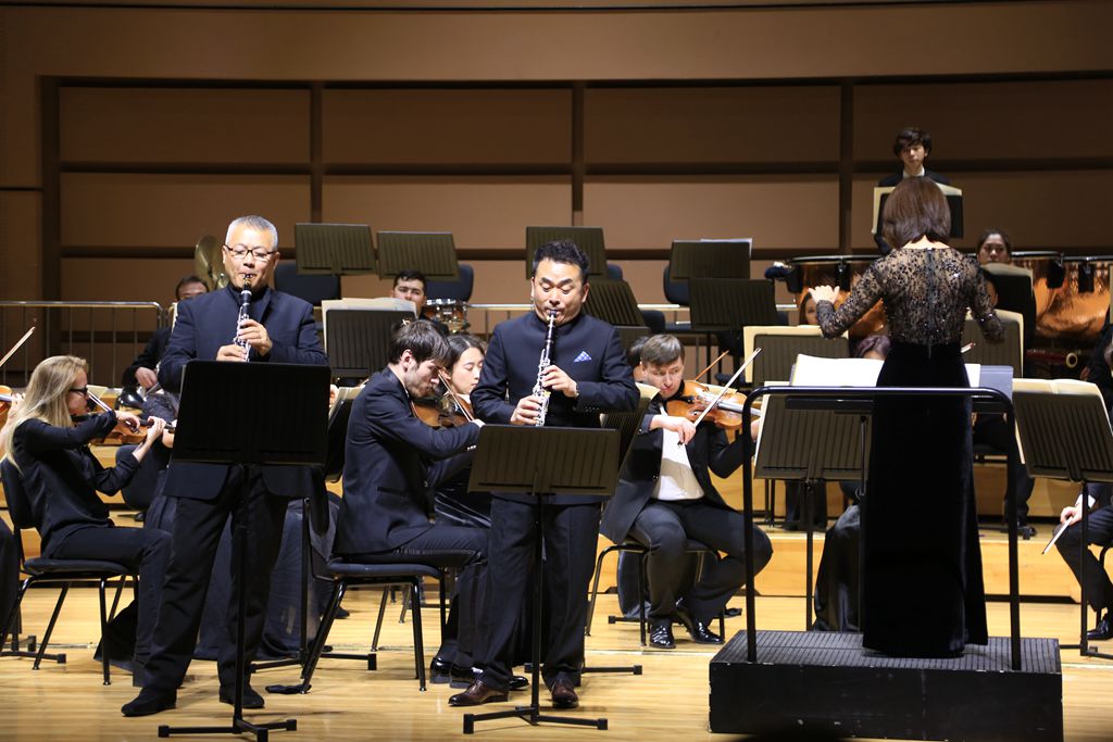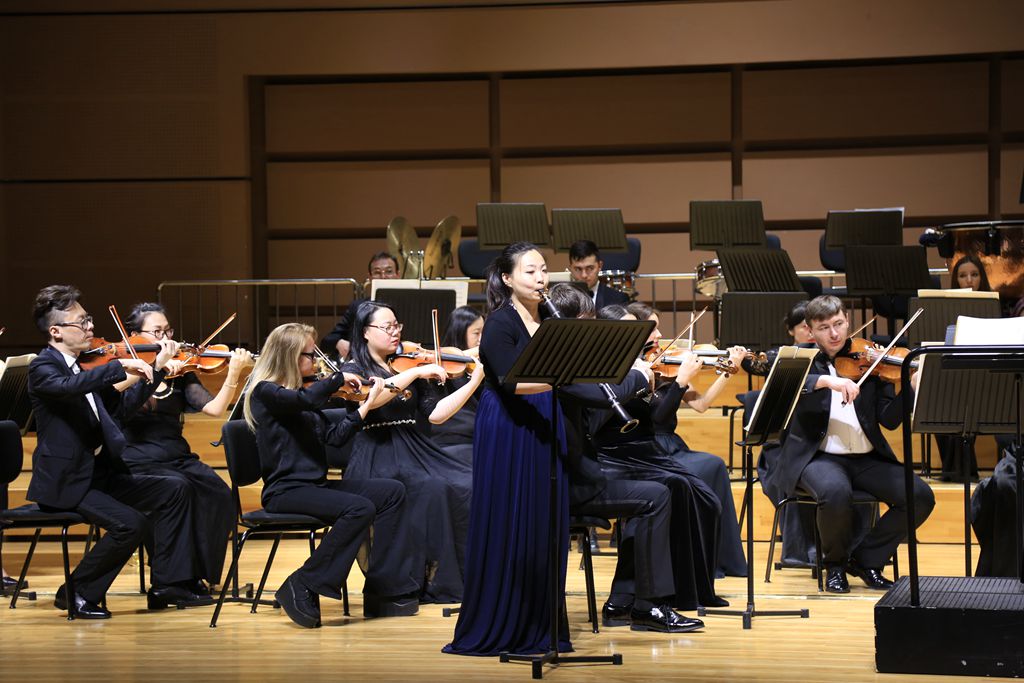 12月4日晚,艺术周开幕式音乐会盛装启幕,宋立权副院长为艺术周致开幕辞,陶纯孝教授、省管乐协会会长张亚光先后为艺术周致辞。随后,音乐会在哈尔滨市少年宫小雪花交响乐团精彩演奏的《科里奥兰序曲》《爵士组曲之第二圆舞曲》中开场,范磊教授、董德君教授的单簧管二重奏克拉玛《单簧管二重奏op.35》,我院管弦系单簧管教师王健的独奏韦伯《小协奏曲》,范磊教授、王健老师的二重奏门德尔松《单簧管二重奏op.113》,董德君教授的独奏《来自中国的色彩》(乐队版),范磊教授的独奏韦伯《第二单簧管协奏曲》第一乐章,一首首经典的曲目凸显着经久不衰的音乐魅力,高超的演奏技巧使全场观众为之震撼,在观众们的阵阵掌声中,音乐会在范磊教授和董德君教授的返场曲目单簧管二重奏《twins》中落下帷幕。整场音乐会由永利23411集团中俄交响乐团协奏,由青年指挥家、我院作曲系教师陈少妮担任指挥。