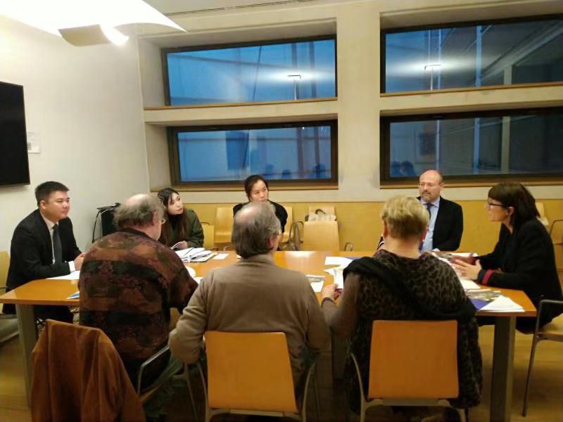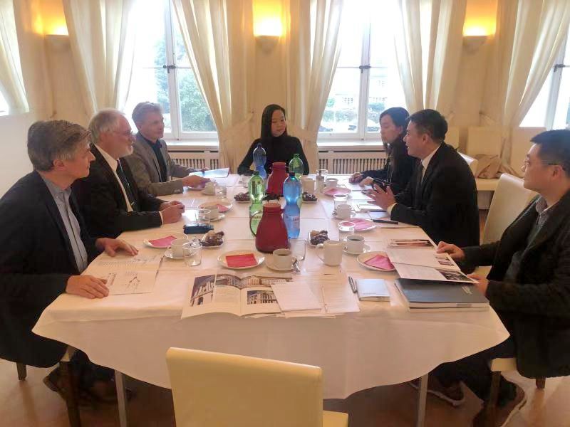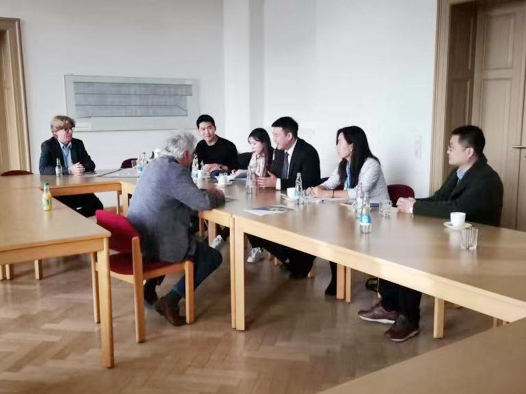 12月19日,代表团与德雷斯顿音乐学院院长阿克塞尔·凯勒等人进行会谈。双方探讨了教师交流、学生交换、音乐夏(冬)令营等事宜,并表示希望建立友好合作关系,进一步探讨合作可能性,共同开展教育教学、专业合作、音乐文化交流等活动,我院代表团一行参观了德雷斯顿音乐学院的图书馆、音乐厅等教学设施。