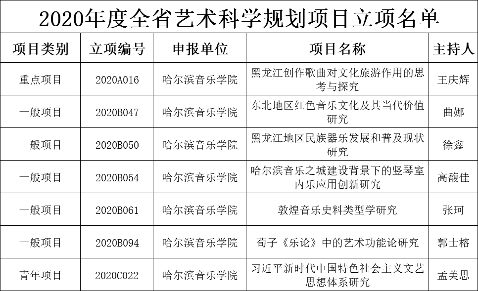 2020年度省级艺术规划课题和优秀艺术科研成果评审结果现已公布。学院合计分别有8人申报的项目获奖,其中,一等奖4项、二等奖2项、三等奖2项;7人获得立项,其中,重点项目1项,一般项目5项,青年项目1项。