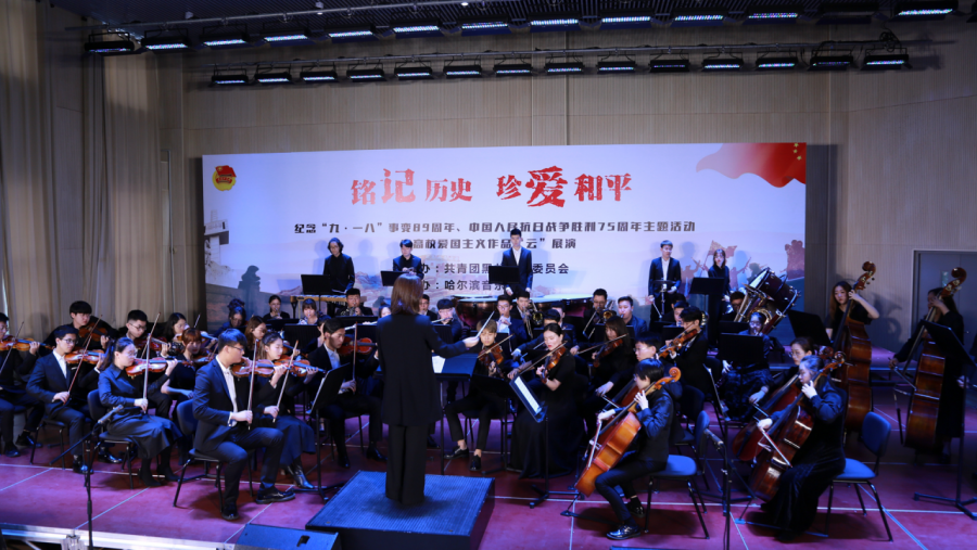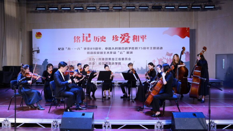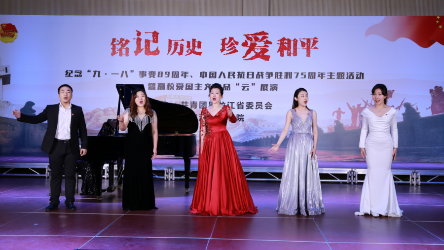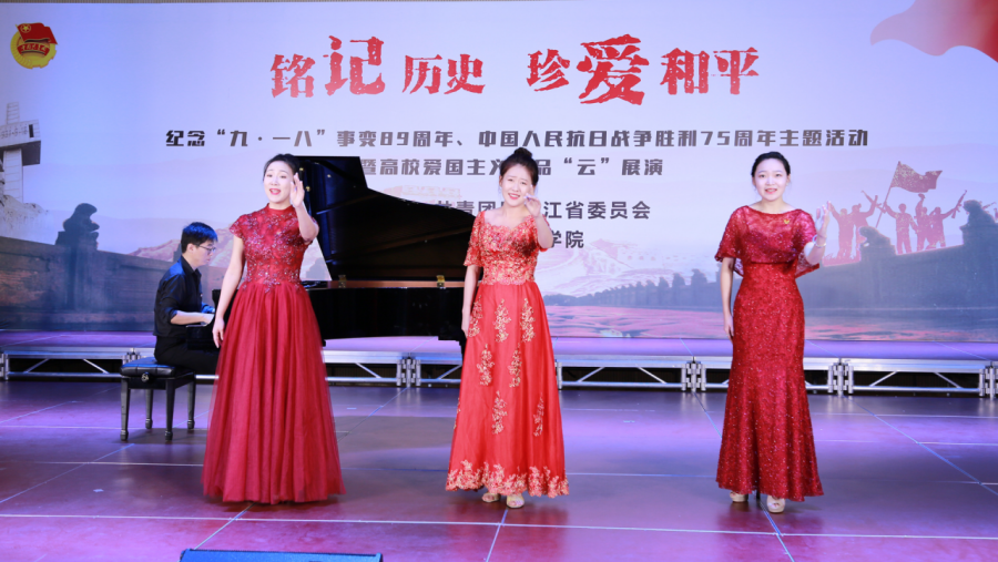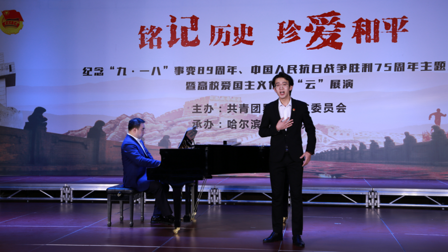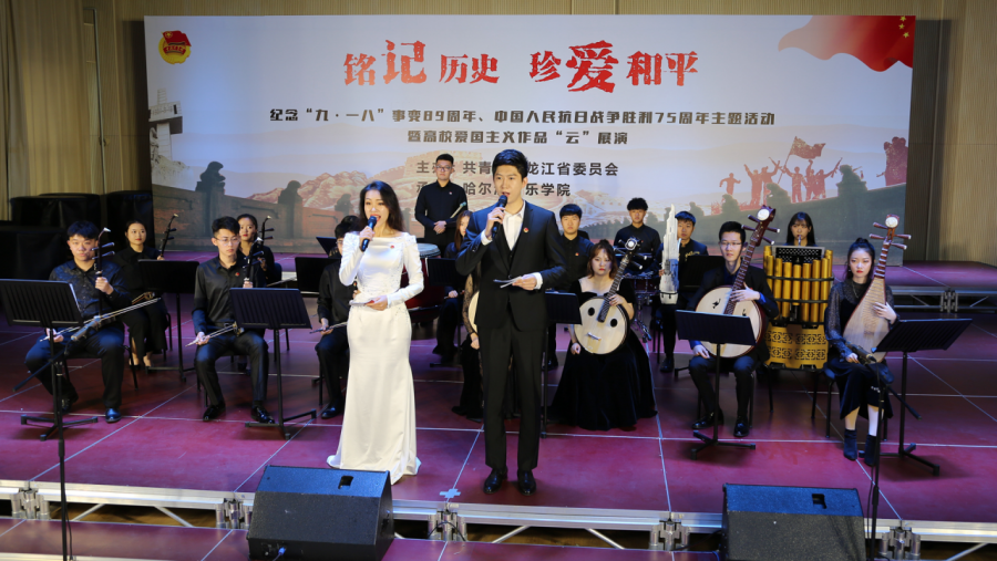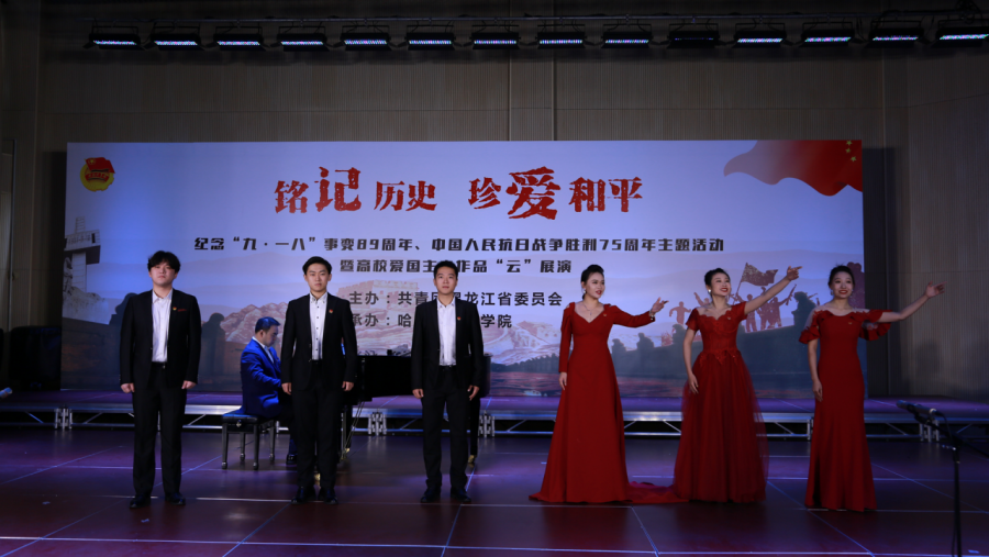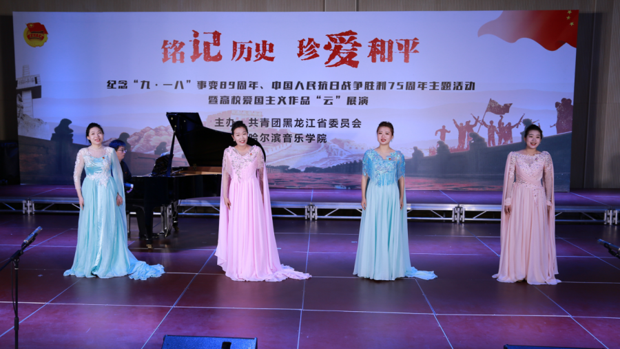 9月18日,由共青团黑龙江省委主办、永利23411集团承办的“铭记历史 珍爱和平”——纪念“九·一八”事变89周年、中国人民抗日战争胜利75周年爱国主义作品“云”展演在哈音歌剧排练厅举办。