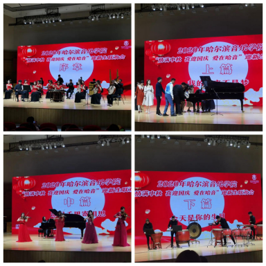 联欢会在学院青年民族室内乐团合奏的《金蛇狂舞》中拉开序幕。整场联欢会以2020级新生为参演主体,由“我的未来不是梦”“明月千里寄相思”“今天是你的生日”三个篇章构成。小品《艺考之路》生动地表现了艺术类考生对艺术的探索和执着;舞蹈《舞动青春》演绎出了校园生活的绚丽篇章;钢琴24手联弹《胜利进行曲》展现出了哈音学子优秀的专业水平和能力;新生寄语视频《来自远方亲人的祝福》带来了远在他乡的家人对同学们的深深思念和殷切祝福;合唱《我们在一起》表达了全国人民在习近平总书记和中国共产党的领导下齐心协力战胜疫情,面对困难团结互助、不屈不挠的精神;小提琴独奏《花儿为什么这样红》、朗诵《读中国》、合唱《今天是你的生日》表达了哈音学子对祖国的真挚感情和美好祝福。联欢会在学院学生管乐团合奏的《不忘初心》铿锵旋律中落下帷幕。