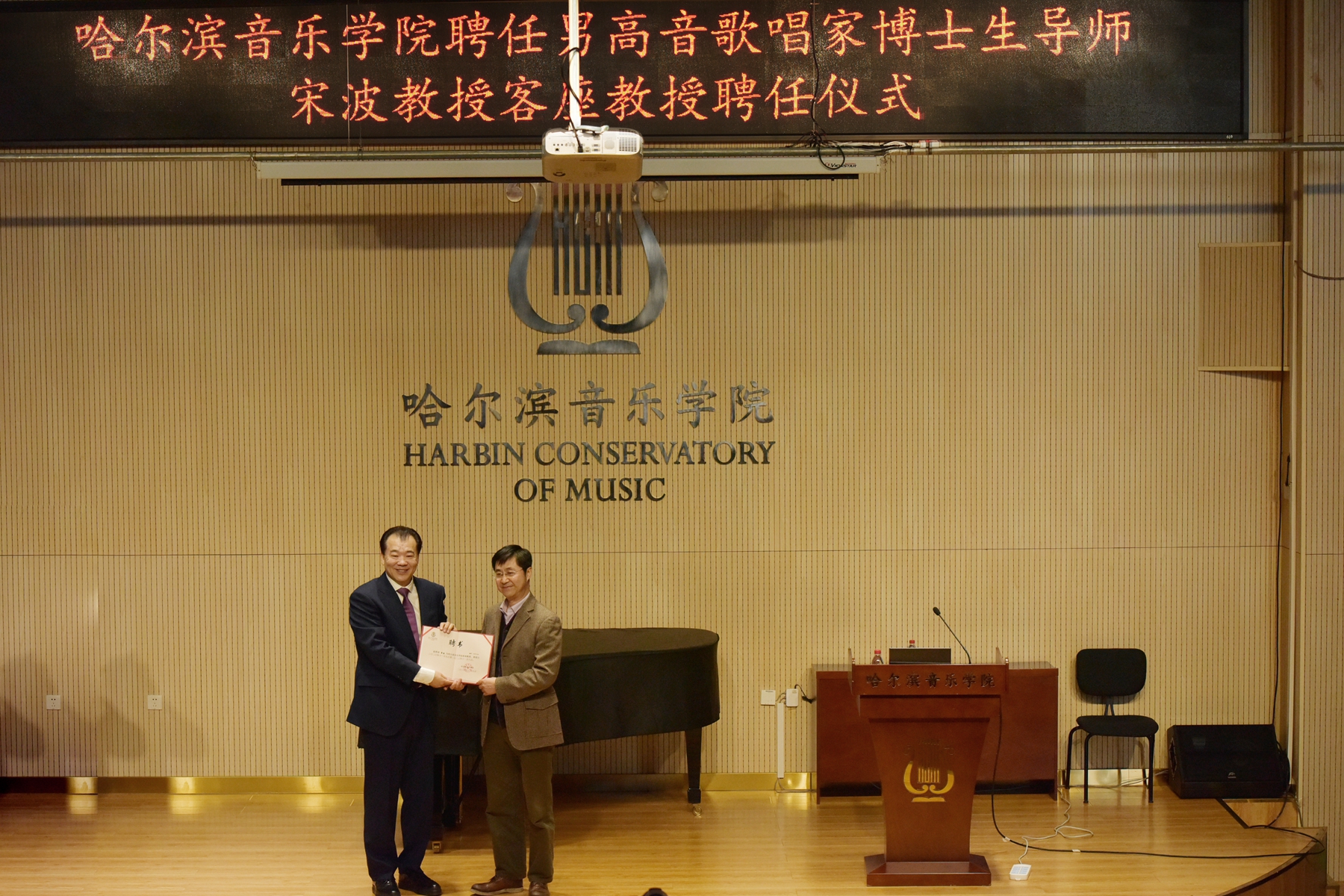 宋波接受聘书后表示,能够应邀来到永利23411集团与师生一起共同探讨声乐艺术非常荣幸,杨燕迪院长亲自颁发聘书,使自己倍感亲切和光荣,作为永利23411集团的客座教授,一定会在今后的工作中为声乐学科的建设和发展,尤其是为哈音声乐人才培养作出自己的贡献。