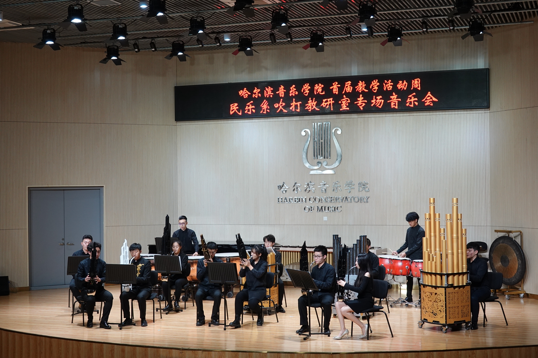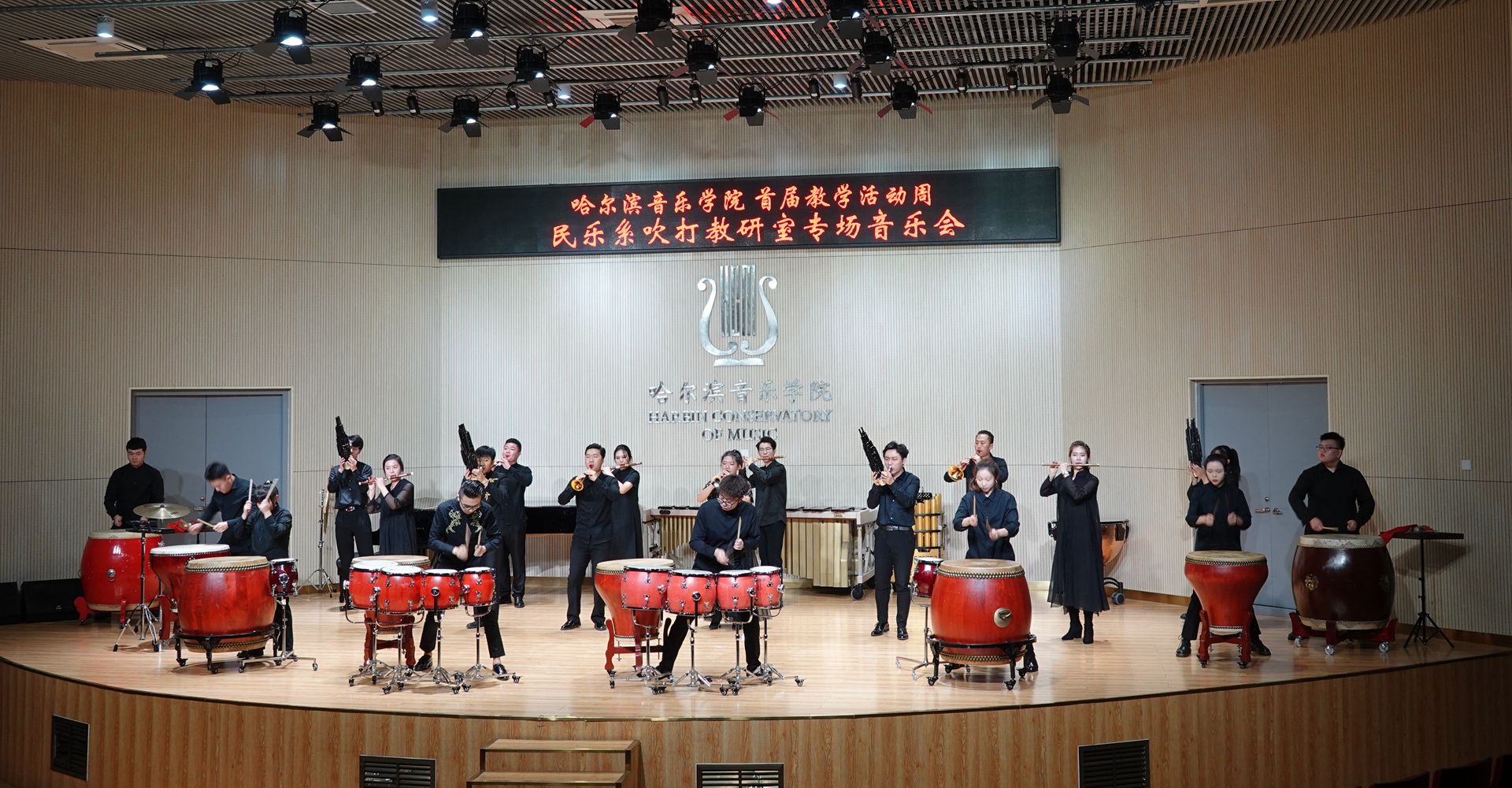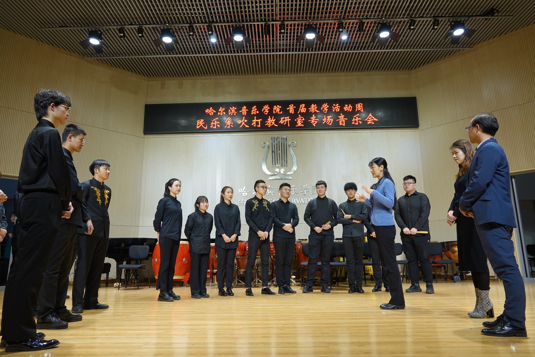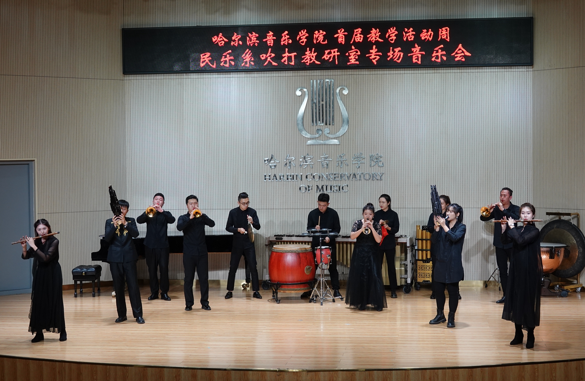 11月13日晚,民乐系在西实训楼C204演奏厅举办吹打教研室本科教学专场音乐会。副院长、党委委员许双毅出席音乐会,民乐系主任姜克美、民乐钢琴联合党总支书记那国光、教务处处长马晓春、黑龙江大学艺术学院副院长韩峰、民乐系副主任索帅及民乐系部分师生参加了音乐会。