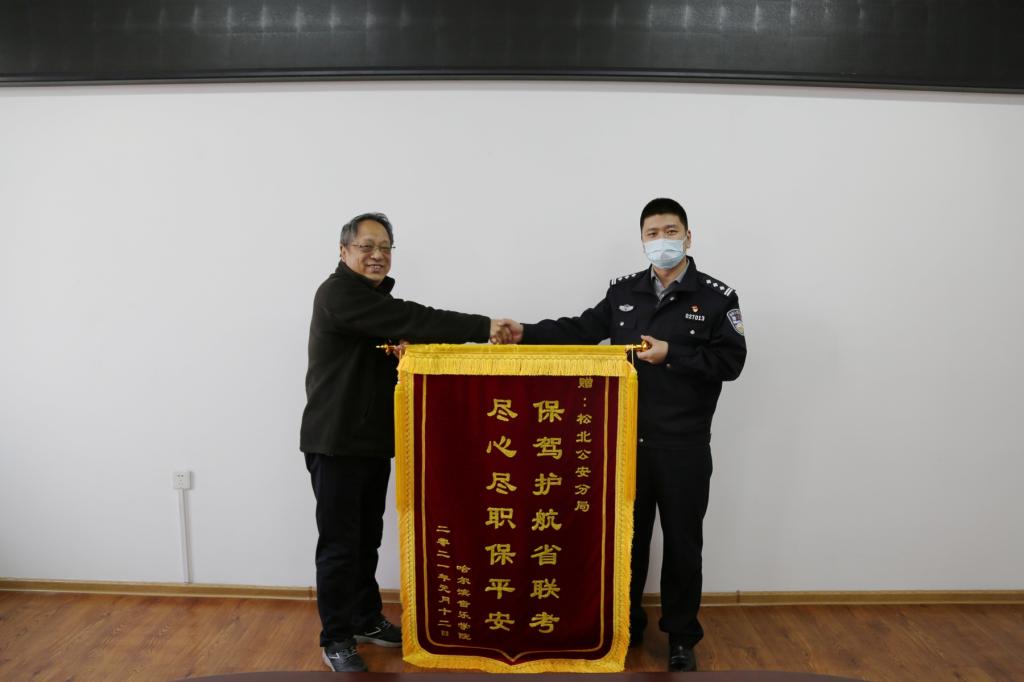 宋立权对多年以来松北区公安分局给予我院的支持和帮助表示衷心的感谢,尤其是黑龙江省普通高校音乐类专业课省级统考面试工作期间,松北区公安分局对校园周边人流和交通秩序的大力维护,保障了考试的顺利进行。
