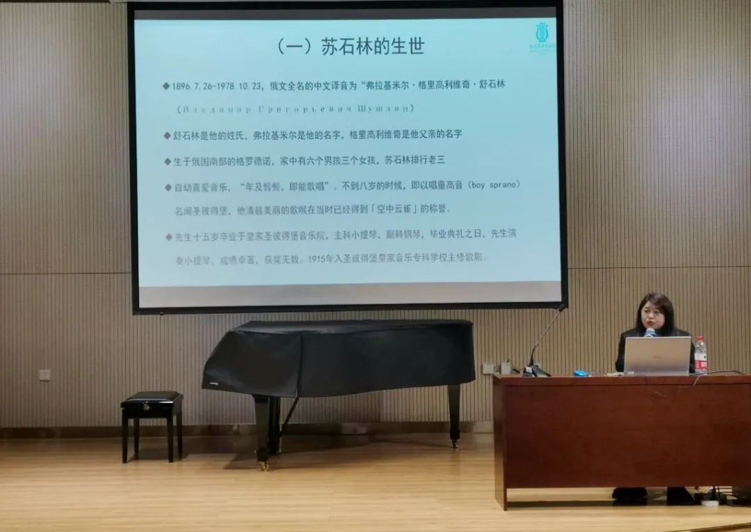 邱洋洋做了关于俄裔著名男低音歌唱家苏石林的专题报告。她以《第一部研究的文献——李英著<苏士林传>》为题,解读了苏石林(苏士林)姓名翻译的学术争鸣,分析了《苏士林传》对苏石林生平经历、演出和教学等方面的意义,客观评价了苏石林为中国声乐发展做出的杰出贡献。讲坛中,音乐学系副主任王岩为博士生讲座作学术导引。讲坛后,王岩、林媛、孙兆润三位老师针对两位博士生的演讲做了言近旨远的精彩点评。“博乐”博士生讲坛是音乐学系党总支落实党史学习教育“我为群众办实事”的重要举措。讲坛将由研究生部和音乐学系共同主办。每期讲坛邀请2名在读博士研究生进行本专业领域研究前沿及阶段性成果的深入交流。选题由导师组审核。