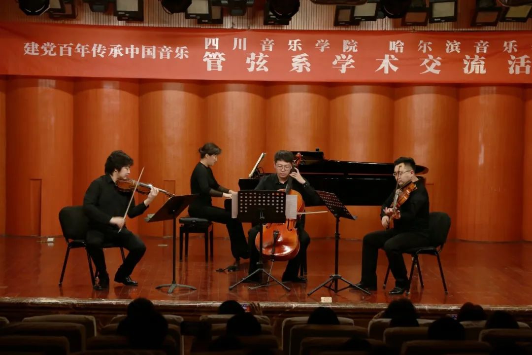 8日下午,杨光和我院大提琴专业副教授李鑫、中提琴专业教师甄泰然、小提琴专业教师张可涵、低音提琴专业教师辛未、艺术指导教师张欣悦与四川音乐学院优秀教师代表共同合作“建党百年·传承中国音乐”主题音乐会,现场座无虚席,气氛热烈,展现了两院管弦系教师高超的艺术水平,也标志着两院教学和艺术实践合作迈向新台阶。