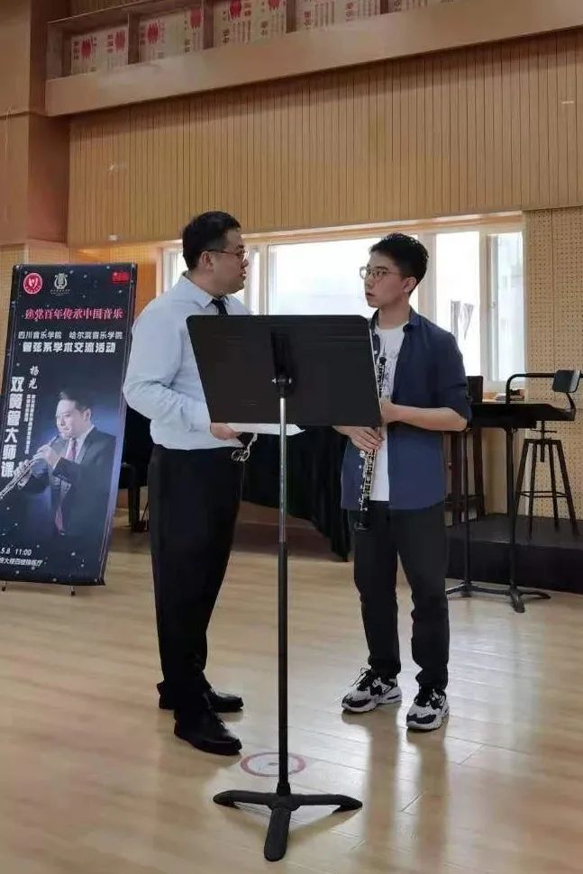 会后,两院领导、各职能部门、教学系负责人观摩了永利23411集团管弦系副主任、中俄交响乐团团长杨光的双簧管大师课。上海音乐学院前管弦系主任、双簧管教授孙铭红,四川音乐学院管弦系双簧管教授杨华玉,管弦系双簧管副教授鞠兴,与四川音乐学院、四川音乐学院附中的三十多名学生,共同聆听了杨光对双簧管演奏技巧等方面的讲解。