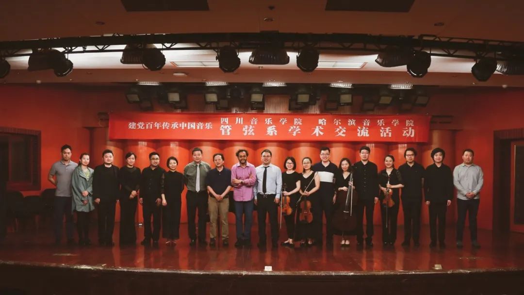 为扎实推进党史学习教育,进一步深化我院教育教学改革和课程思政建设,学习兄弟院校先进的党建、教学、管理等经验,5月8日,由副院长宋立权带队,学院科研处、管弦系一行到四川音乐学院开展学术交流活动。四川音乐学院党委常委、副院长孙洪斌,科研处处长杨晓,管弦系党总支书记、系主任蔡宇,学院办公室副主任、院务办公室主任万洧志,艺术处副处长陈万,管弦系副主任宋世斌,四川音乐学院交响乐团副团长谭波等同志热情接待我院一行并参加交流座谈。
