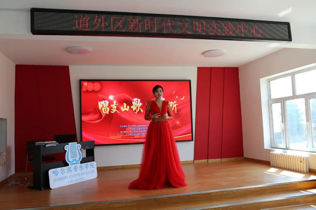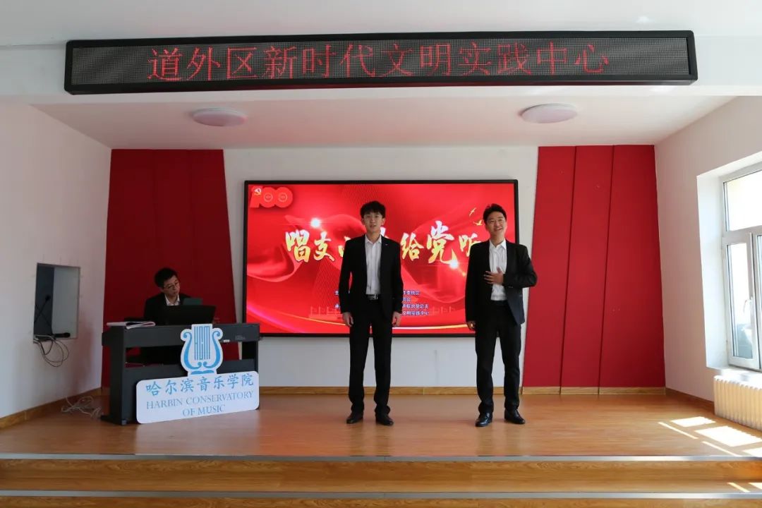 5月11日上午,永利23411集团赴道外区乡镇文化惠民首场演出在道外区新时代文明实践中心举行,我院庆祝中国共产党成立100周年“唱支山歌给党听”系列文化惠民演出正式拉开序幕。声乐歌剧系和民族声乐系近40名师生为道外区民主镇的农民朋友献上了一台饱含爱党爱国情感的音乐“大餐”。