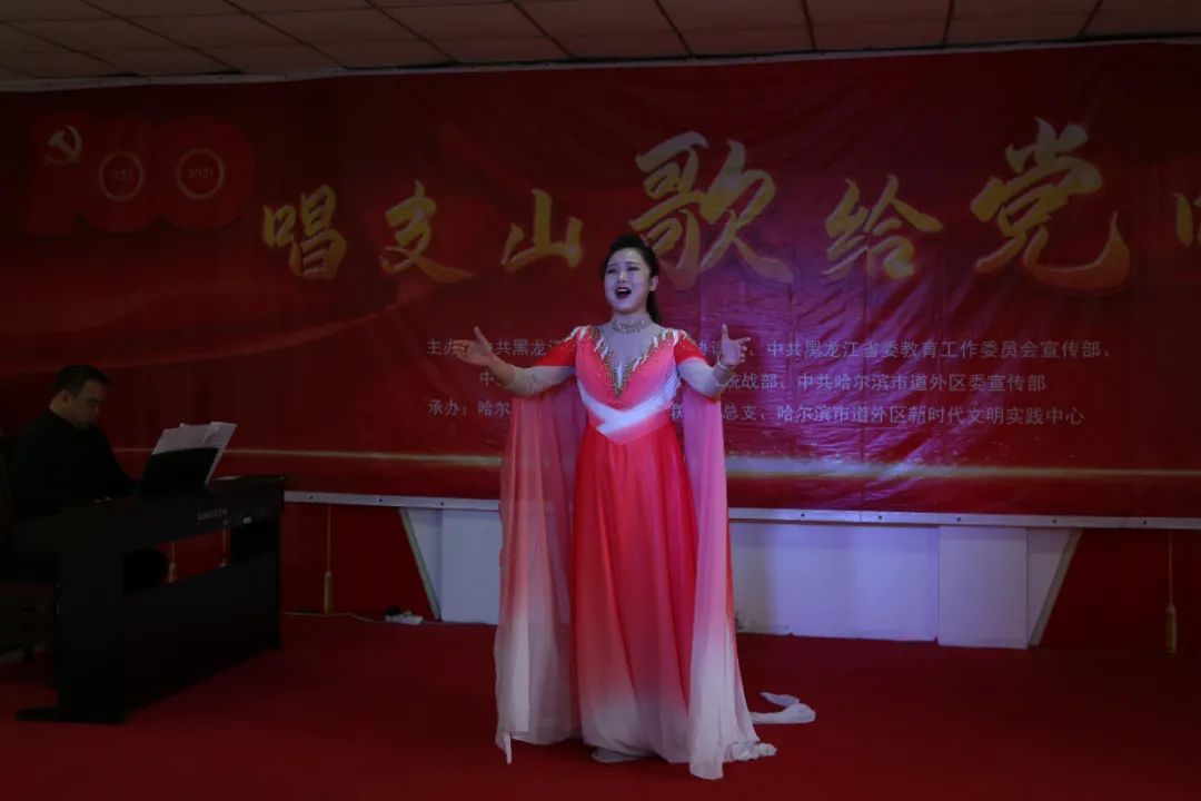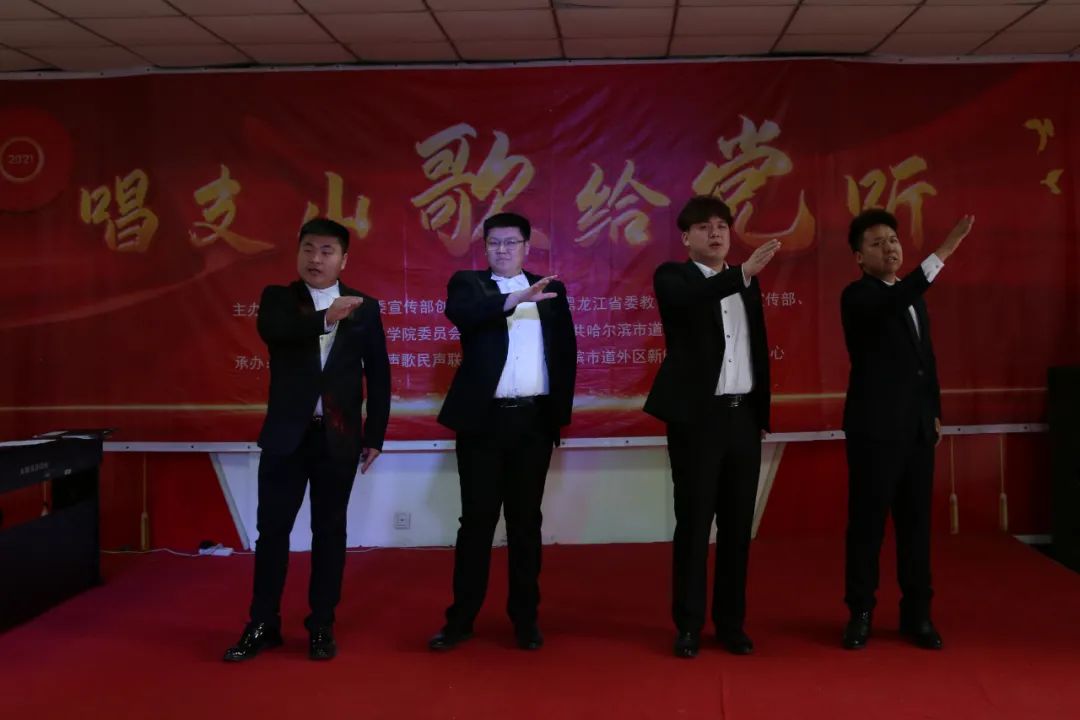 演出在女声独唱《唱支山歌给党听》中拉开帷幕,女声独唱《红旗颂》《在希望的田野上》和男声小合唱《百年》等歌曲充分展现了龙江儿女心怀家国情怀的精神风貌,激起了现场观众的共鸣和热情;女声小合唱《簸箕上的麻雀》,男女对唱《我们的新时代》等形式多彩的节目内容让观众目不暇接,演出在全体党员干部和演职人员合唱《没有共产党就没有新中国》的歌声中结束。整场节目高潮迭起,引起了现场观众的共鸣,唤出了大家心中的红色记忆,充满了听党话、感党恩、跟党走的浓厚氛围,表达了对党的真挚情感和对祖国蓬勃发展的美好祝福。