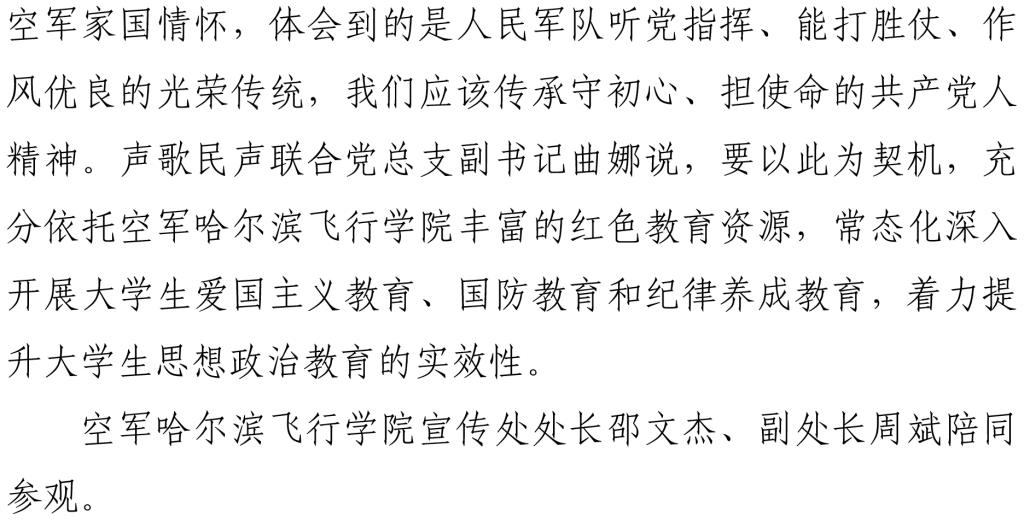 下一条:声歌民声联合党总支赴空军哈尔滨飞行学院开展“军民话深情、歌声颂祖国”慰问演出