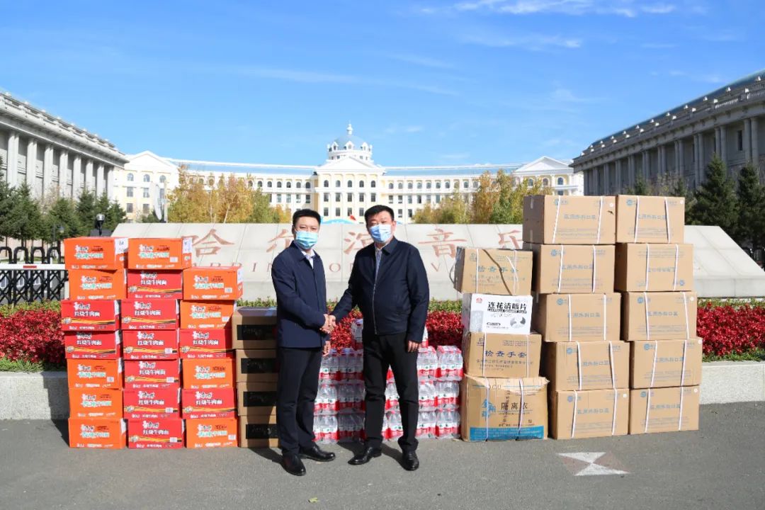 捐赠仪式上,周阳代表企业表示,希望用力所能及之举助力哈音师生员工共同战疫,同时会联合青年企业家持续向哈音捐赠疫情防控用品,真正承担起社会企业的责任与担当。
