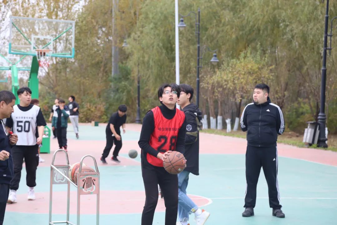 为积极响应国家“全民运动”号召,营造拼搏奋斗、追求卓越的校园体育文化氛围,10月13日下午,由我院团委、工会主办,思想政治理论课教研部协办的“以篮球之名,投哈音风采”师生投篮比赛在篮球场成功举行,学院党委副书记兼工会主席刘东兴,副院长、党委委员许双毅亲自参与到比赛中,与选手们切磋球技、增进交流,学院党政办公室(工会)、团委等部门负责人来到比赛现场为参赛选手们加油助威。