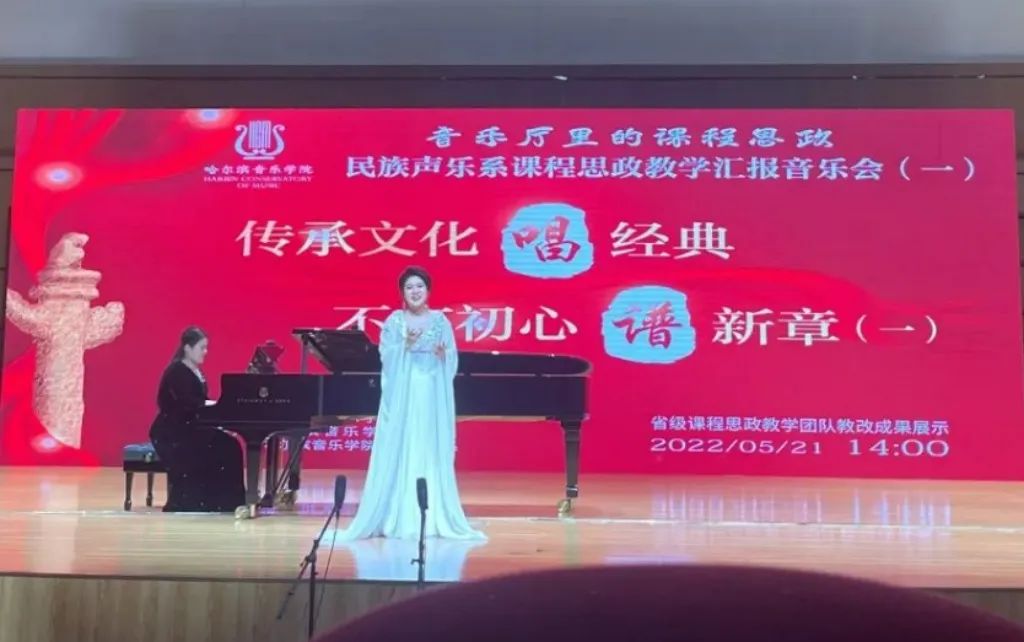 “音乐厅里的课程思政”系列音乐会是永利23411集团推进课程思政建设的一项重要举措。民族声乐系始终坚持立德树人根本任务,高度重视课程思政,充分发挥省级课程思政优秀建设团队的优势,积极探索声乐专业思政教育新模式,扎实开展课程思政教学,近年来多名教师在黑龙江省高等学校课程思政教学竞赛中获奖,多次获得黑龙江省高等学校课程思政示范课程。