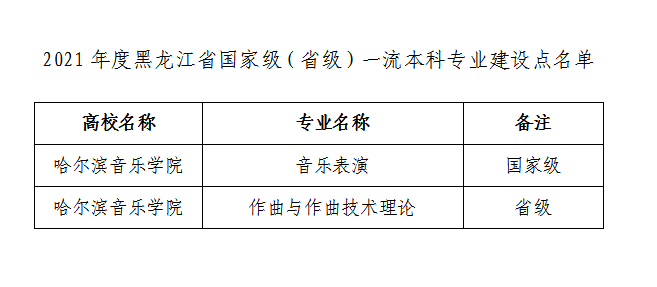 近日,黑龙江省教育厅公布了《2021年度国家级和省级一流本科专业建设点名单的通知》(教高厅函[2022]14号),我院音乐表演专业入选2021年度国家级一流本科专业建设点,作曲与作曲技术理论专业入选省级一流本科专业建设点。截至目前,我院建院初期设立的3个本科专业全部入选国家级省级一流专业,实现了“双万计划”一流专业的全覆盖。