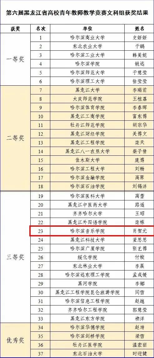 8月17日,由黑龙江省总共工会、黑龙江省教育厅联合举办的“喜迎二十大 建功新时代”第六届黑龙江省高校青年教师教学竞赛圆满结束,我院民乐系教师肖贺元获得文科组三等奖的优异成绩,是全省艺术类唯一一名入选省赛获奖的选手。