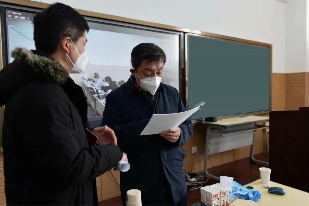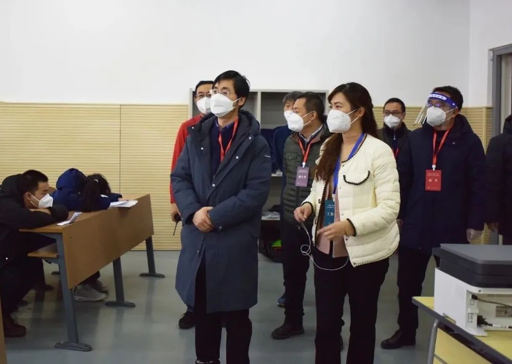 李石实地查看了候考室、考场、视频监控室、考务办公室,听取考点负责人工作汇报,并详细询问了考试进展、考试流程、考场设备和疫情防控情况。李石表示,学院经验丰富、准备充足、规划合理,考场管理严格,程序严谨,在制度、流程等方面全方位保证了面试工作的科学性和公平性,为考试顺利进行提供了可靠保障。