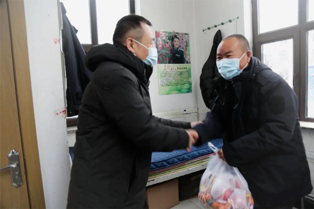金虎辞旧岁,瑞兔迎新春。1月21日,正值农历除夕,美丽的哈音校园灯笼高挂,洋溢着温馨祥和的节日氛围。上午8时30分,学院党委副书记、工会主席刘东兴代表领导班子深入一线,看望慰问春节期间依旧坚守在工作岗位的教职工,并向大家送上节日祝福和慰问品。党委委员、组织部长马楠,党政办公室主任曹丽丽,后勤资产管理处处长付伟等陪同慰问。