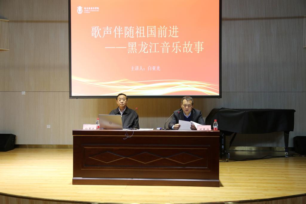 3月15日下午,学院在主楼A220演奏厅举办学习贯彻党的二十大精神宣讲暨“歌声伴随祖国前进——黑龙江音乐故事”主题音乐党课。黑龙江省文联副主席黄锦秋出席,学院全体学生党员、留学归国教师参与党课。党课由党委副书记、工会主席刘东兴主持。