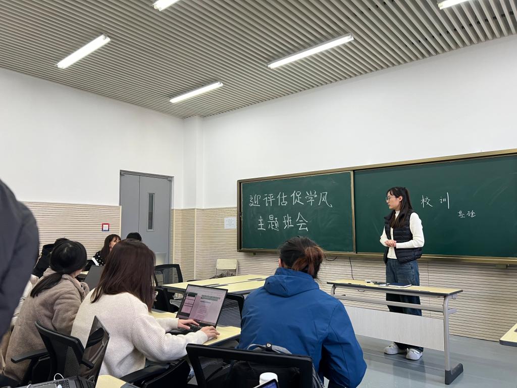 艺术学系2022级本科班举办“迎评估,促学风”主题班会。在班会上,老师强调学风建设的重要性,并要求同学们养成良好的学习习惯。同学们也表示会积极努力的学习,努力建设良好的学习风气和学习氛围。