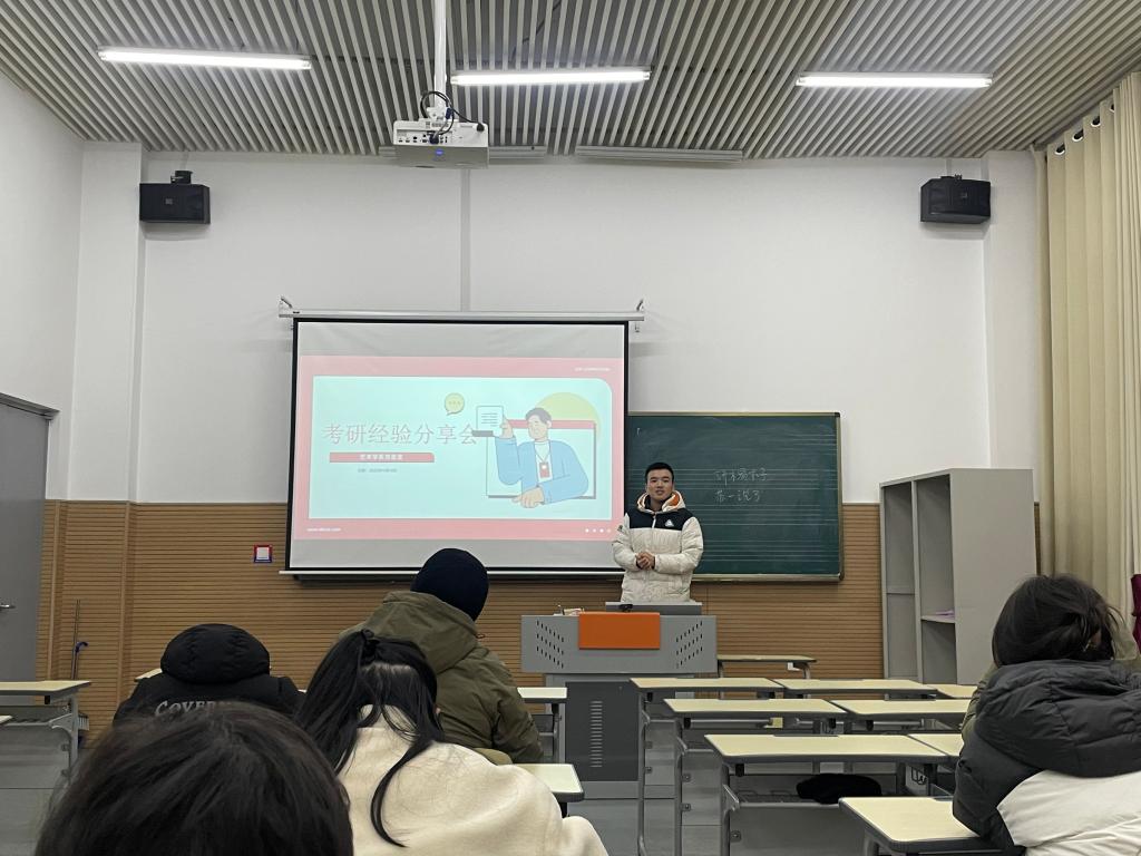 研究生的学长学姐鼓励同学们要坚定目标、不怕困难、专心复习。郭宏月老师也勉励同学们要有信心、有决心,结合个人学习兴趣,借鉴学长学姐经验选择报考方向,持之以恒地做好备考准备,全力以赴战到考研最后一刻。