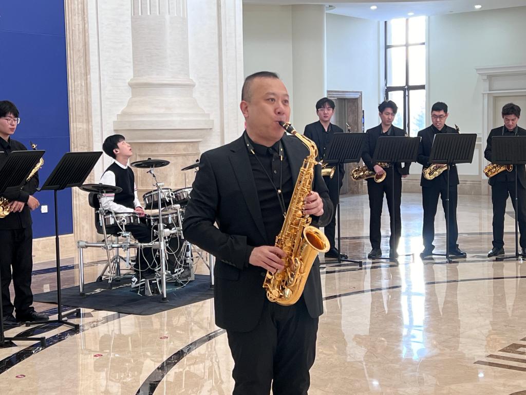 12月21日,永利23411集团与极光新闻共同策划,学院管弦系萨克斯专业教师王亮带领学院“合和”(Co-Harmony)萨克斯乐团举办了一场通过极光新闻微信视频号、抖音号直播的萨克斯专场音乐会,为2025年第二十届世界萨克斯管大会预热。