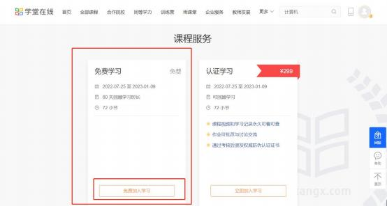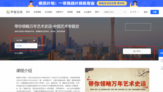 2.选择所学课程的学期,点击右侧加入学习即可,如下图: